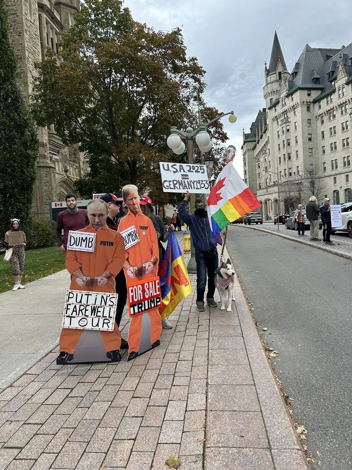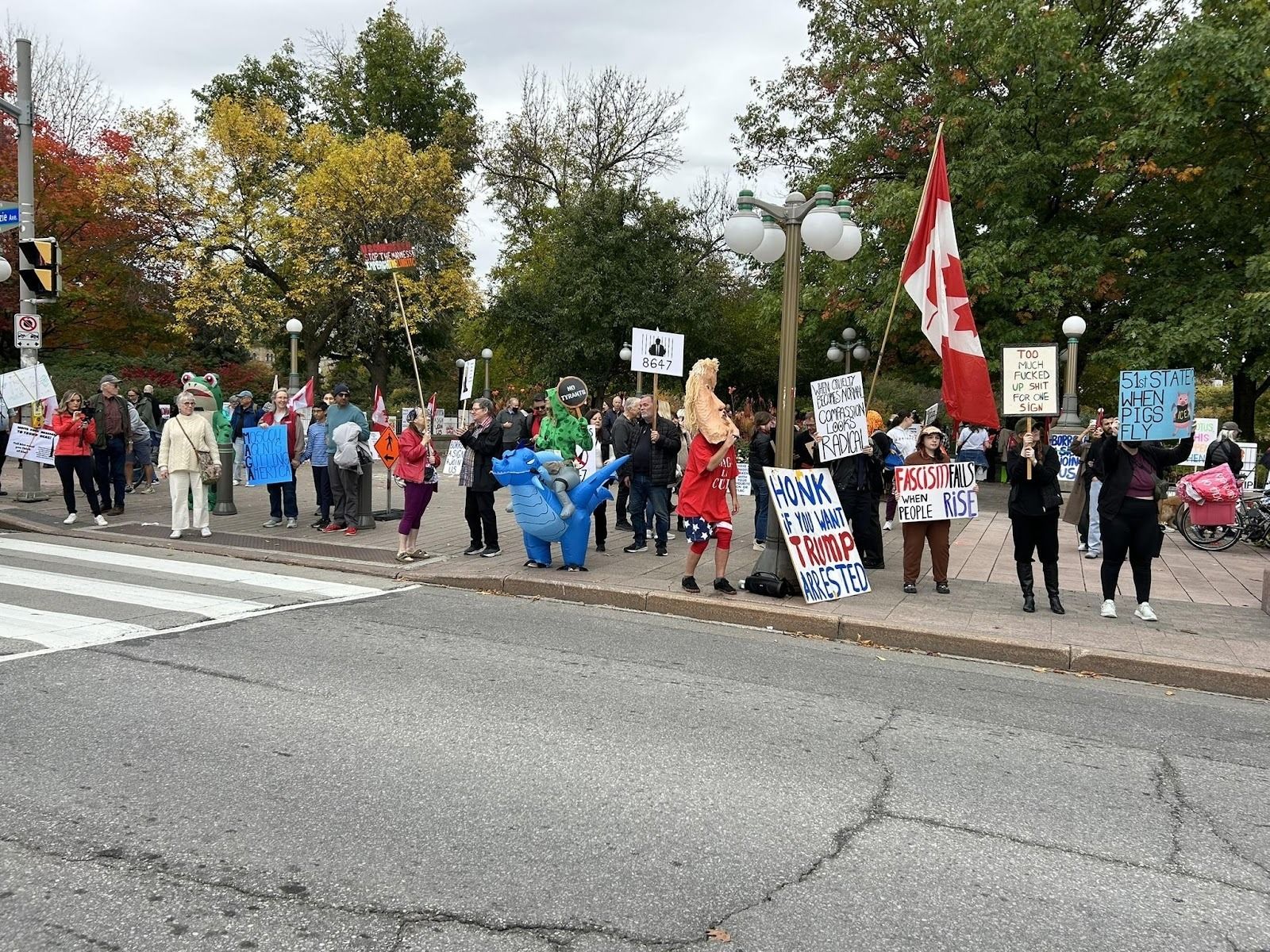 So it’s with this perspective that I attended the No Kings protest in Ottawa organized by Indivisible Ottawa at the US Embassy on Saturday November 18. On that day, an estimated 7 million people gathered to protest the Trump administration’s many legal, civil, and humanitarian violations. Indivisible Ottawa’s stated goals are to protect equality and democracy in the US and in Canada. Its members are composed of US citizens, dual citizens, and Canadian citizens. It is estimated that hundreds of people attended the event in Ottawa.