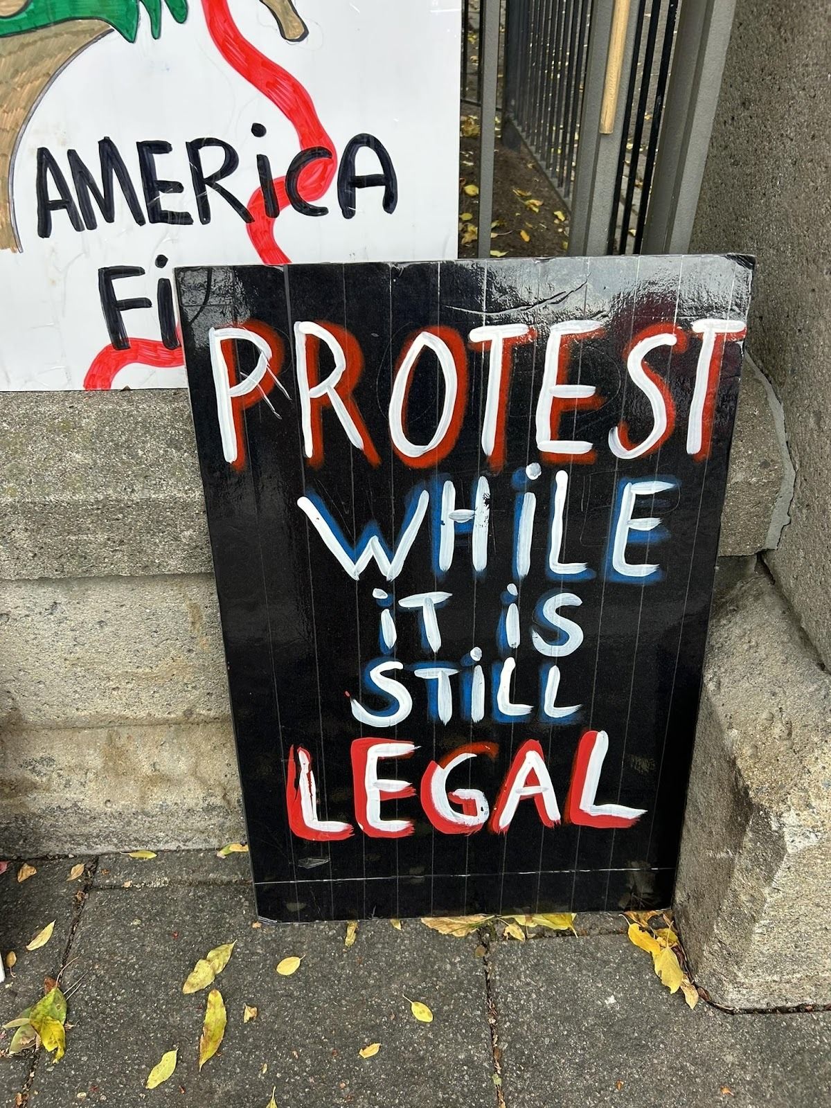 Like many of the recent protests in the US, this protest drew on humour and silliness to subvert the power overreach and violence behind the administration. My protest buddy and I saw many inflatable creatures, creative costumes and funny signs, paired with a calm and welcoming atmosphere where police were scarcely in sight, and protesters were mindful to share space with pedestrians, cyclists and cars.